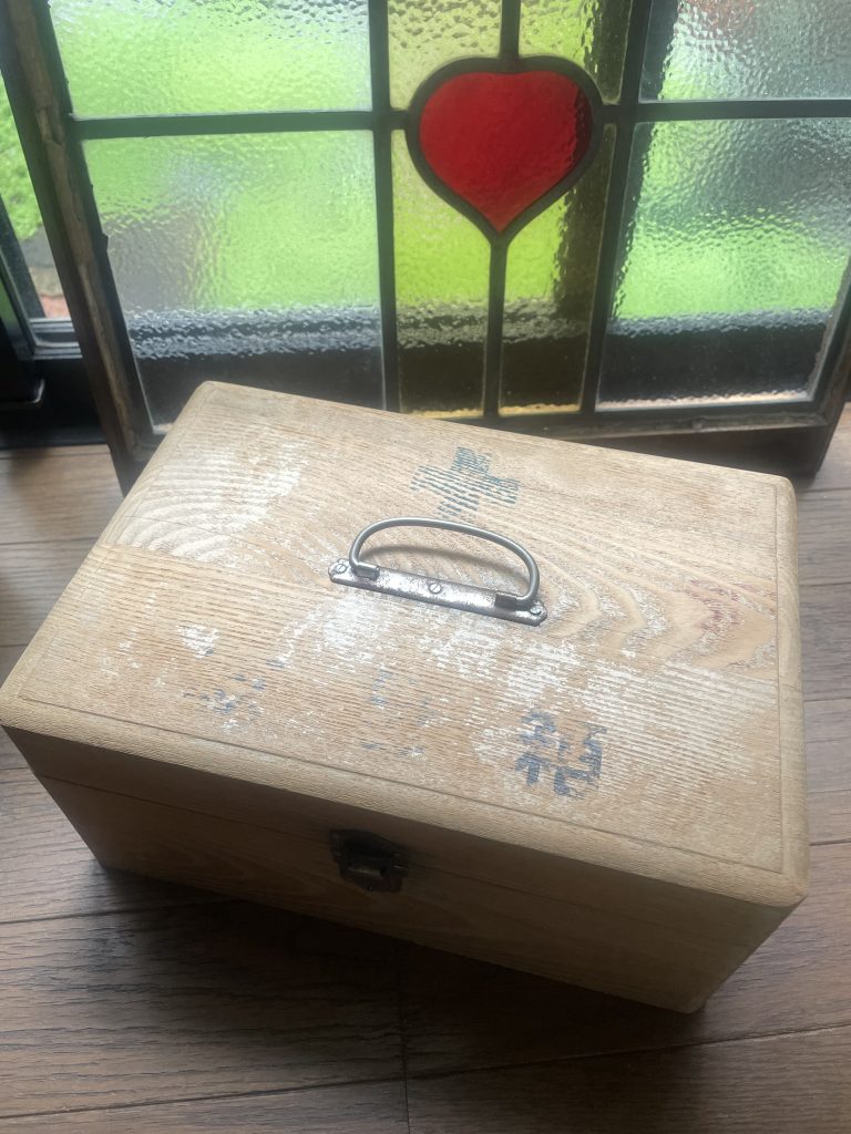 そんな救急箱が我が家にもやってきました。週末に出かけた古道具屋で見つけた救急箱。きれいに洗って天日干しをして最後にオイルでメンテナンス。
