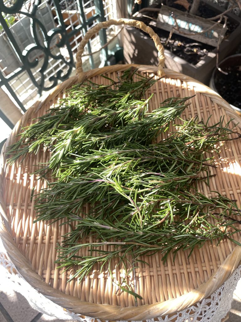 今朝、無農薬のローズマリーが届きました。摘みたてほやほやのフレッシュなローズマリー。箱を開けると香りが部屋中に広がりました。