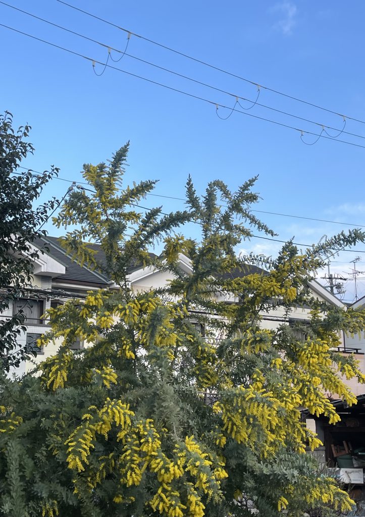 お隣さんの庭に咲いたミモザ🪴