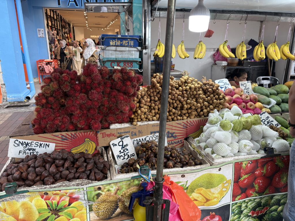 マレーシア滞在中に一番印象深かった事は。とにかく野菜と果物が安い。日本で買えば2000円ほどする立派なシャインマスカットが500〜600円程度。トマトも日本で買う半値ほど。夕食は自炊が多かったので市場に買い物行くのが楽しかった。毎日健康食。水の質が良いのかお肌もスベスベ。